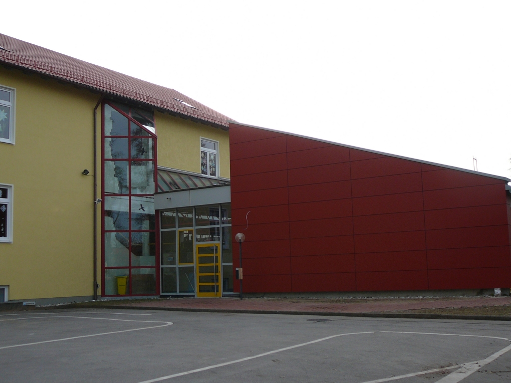 1985: Schulerweiterung und Bau Mehrzweckhalle (Architekt Max Speidel),