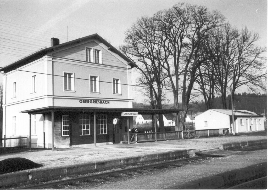 Im Jahre 1875 war die Paartalbahn von Augsburg nach Ingolstadt fertiggestellt. Die Streckeneröffnung war am 15. Mai 1875 an diesem Tag wurde auch der Bahnhof von Obergriesbach in Betrieb genommen. 1980 wurde das Bahnhofsgebäude geschlossen und seit 2008 ist es in Privatbesitz.