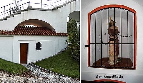 Kapellenbau aus dem 16. Jahrhundert. Veränderungen im 17./18, Jahrhundert. Länge 8 m, Breite 3,2 m. Vorhalle zugesetzt; Eingang vermutlich ehemals von Osten her. Halbrunde Figurennische im Westen. Nische jetzt nach oben erhöht, mit dem Kapelleneinbau unter die Stiege und Aufstockung der Kapelle zu diesem Zweck musste die Figur (ehemals Anna?) höher gestellt werden. Jetzige Türe und 2 Rundfester nachträglich im N und S in die Mittelwand eingebracht. Die heute in der Nische stehende Figur "Christus an der Säule", ein lebensroßes Andachtsbild das besonders im 18. Jahrhundert verbreitet war, von Johann Caspar Eberle 1745 geschaffen, ist eine Stiftung von Pfarrer Ferdinand Stickl.