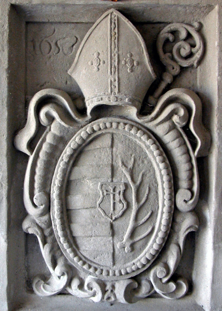 Der Stein, der im Foyer der Gemeindeverwaltung Dasing zu sehen ist, enthält in einer barocken Kartusche das Wappen des Abtes Bernhard Hertfelder von St. Ulrich und Afra in Augsburg. Unter dem Schild stehen die Insignien der Abtwürde: Mitra und Abtstab.