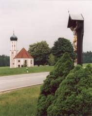 im Achteck gebaut, an d. Ostseite erhebt sich der Turm mit Kuppel, ist weit über Bayern hinaus bekannt