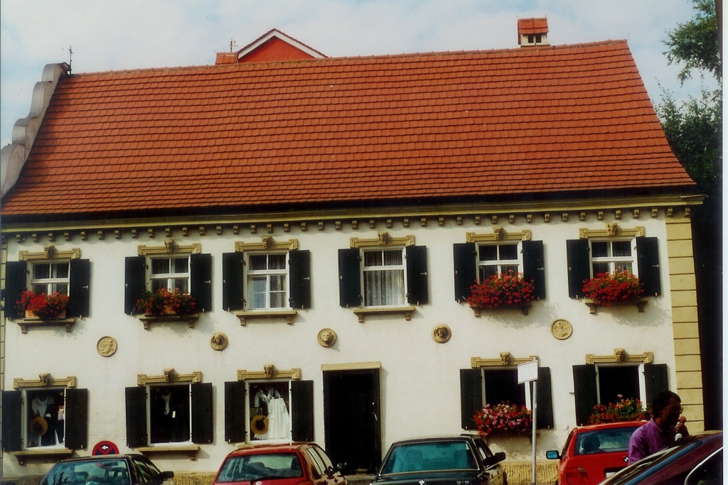 Bürgerhaus am Marktplatz in Mering mit Schweifgiebel.